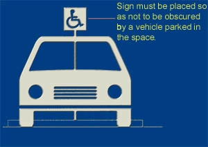 Accessible parking spaces shall be designated as reserved by a sign showing the symbol of accessibility. Such signs shall be located so that they cannot be obscured by a vehicle parked in the space.